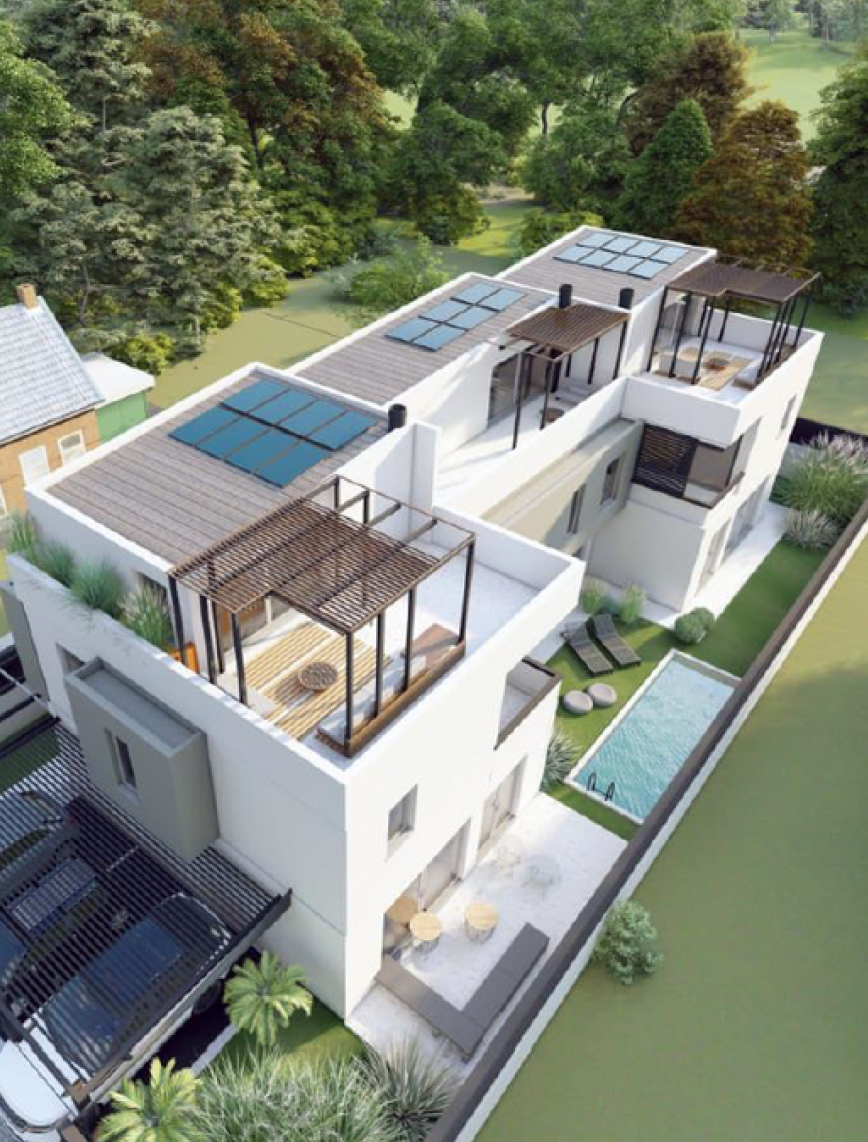 - 3 semi-detached residences ranging from 183–225 sq.m